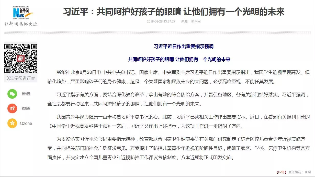 國家衛(wèi)健委發(fā)布近視防控指南 解決孩子用眼過度問題